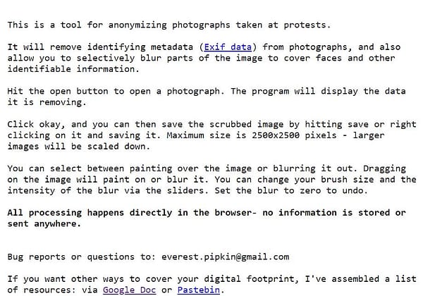 Tool for anonimizing photographs taken at protests.