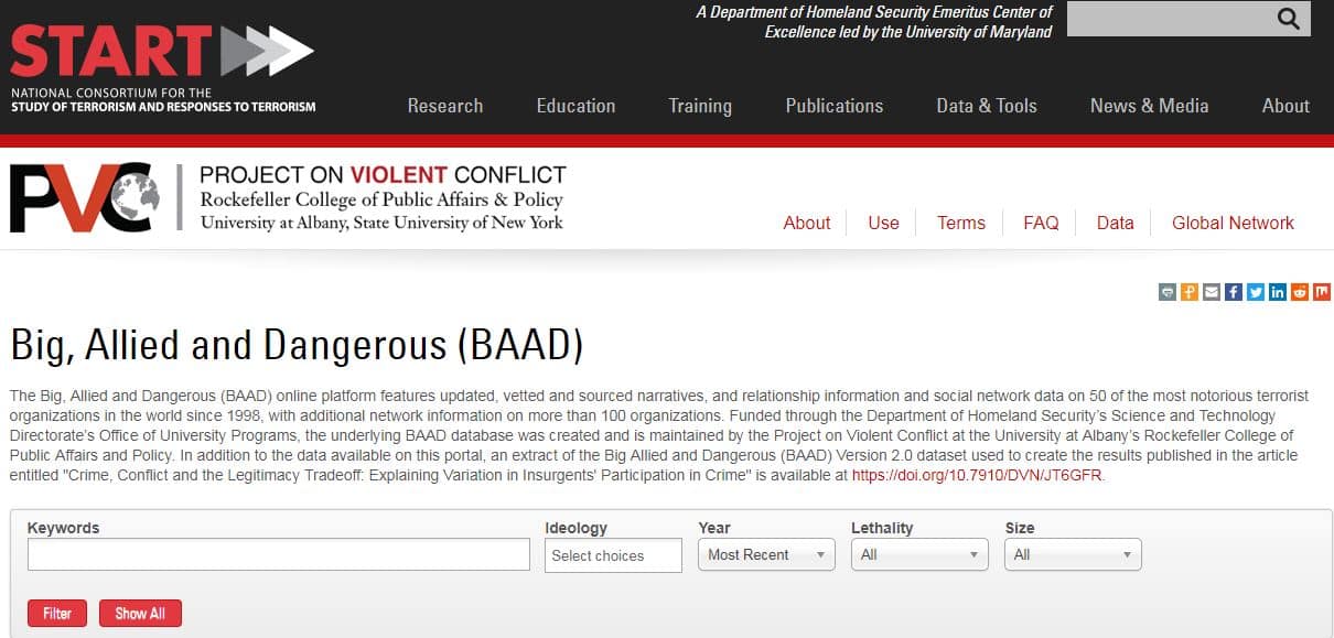 Online platform features updated, vetted and sourced narratives, and relationship information and social network data on 50 of the most notorious terrorist organizations in the world since 1998, with additional network information on more than 100 organizations.