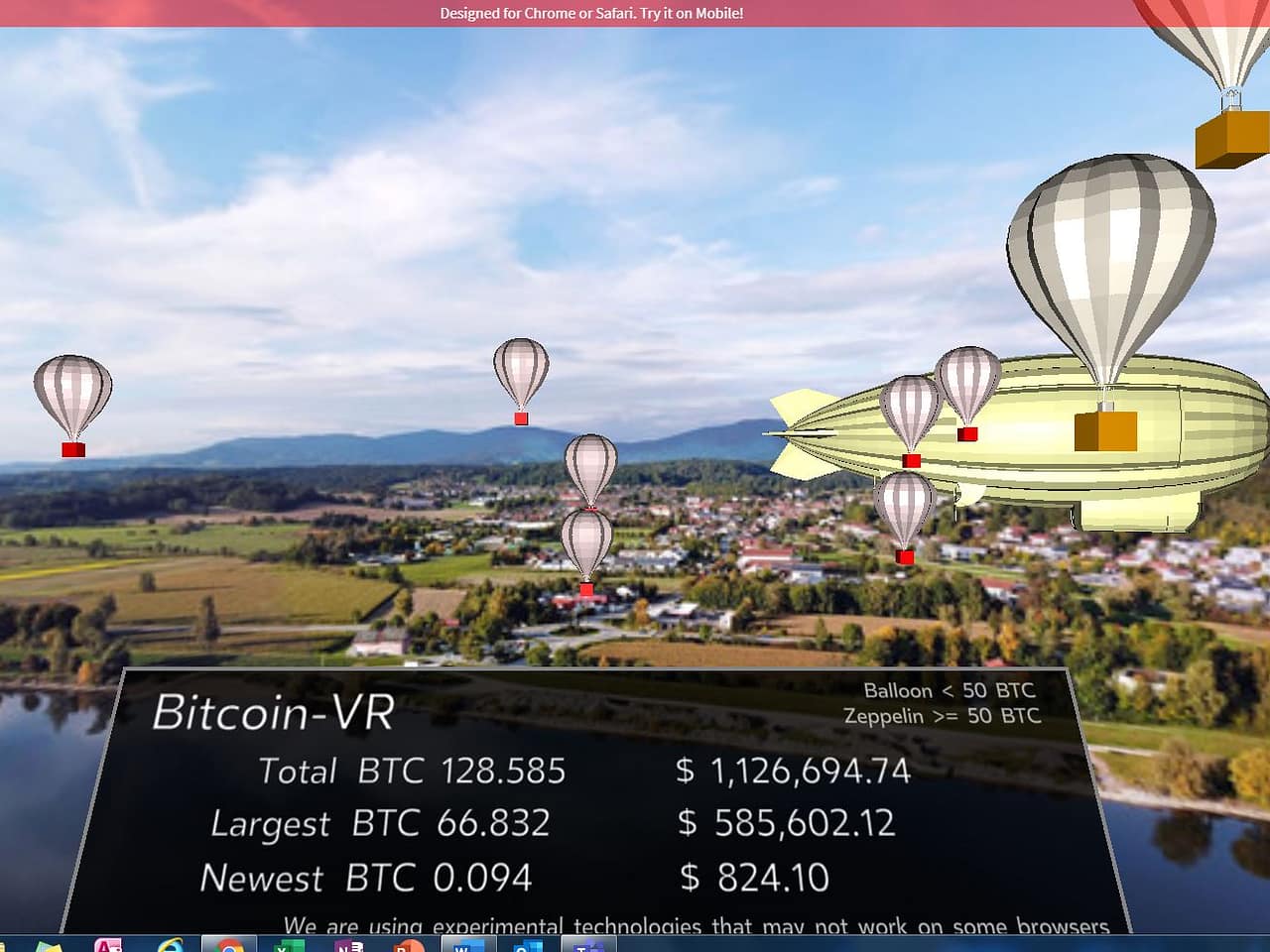 Real-time VR visualization of Bitcoin transactions on the blockchain.