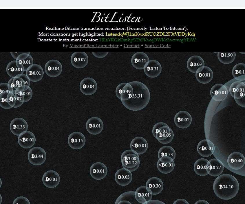 Real-time Bitcoin transaction visualizer created by Maximillian Laumeister.