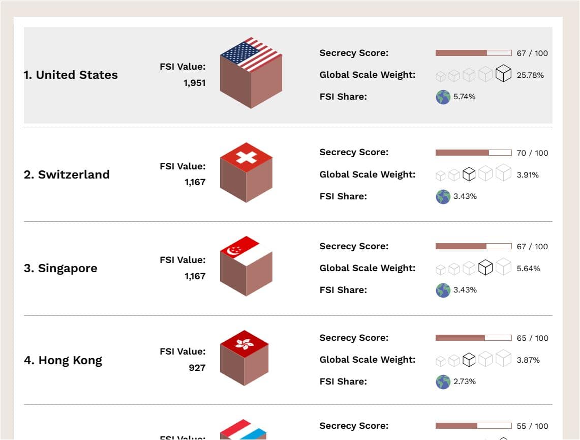 The Financial Secrecy Index is a ranking of jurisdictions most complicit in helping individuals to hide their finances from the rule of law.