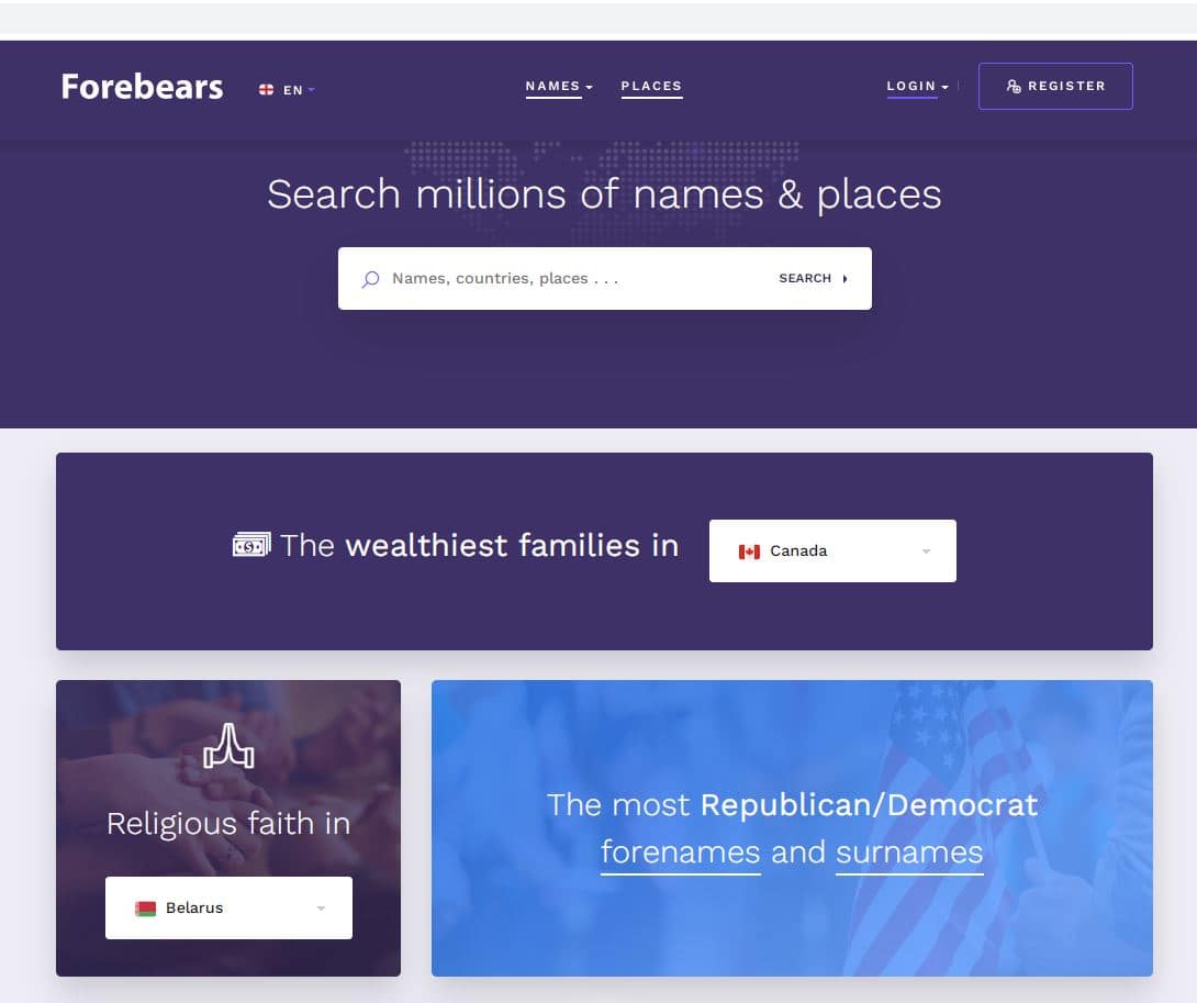 Genealogy portal which includes a geographically indexed and cross-referenced directory of sources for family history research and a dictionary of surname meanings, including information on their geographic distribution.