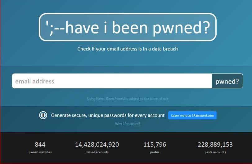 Website that allows Internet users to check whether their personal data has been compromised by data breaches. Created by a security expert Troy Hunt in 2013.