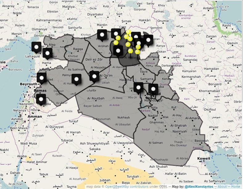 This map details borders of the provinces claimed by the Islamic State within Syria and Iraq. Map by @AlexiKonstantos.