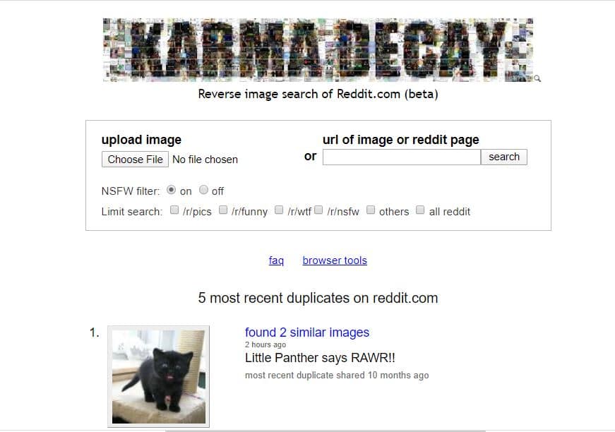 Karma Decay is a reverse image search tool for images on Reddit.com only (beta). It is good at finding 'very similar' images.