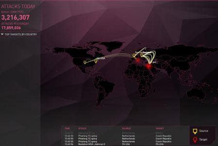 Real-time tracking of cyber attacks as they're launched around the globe.