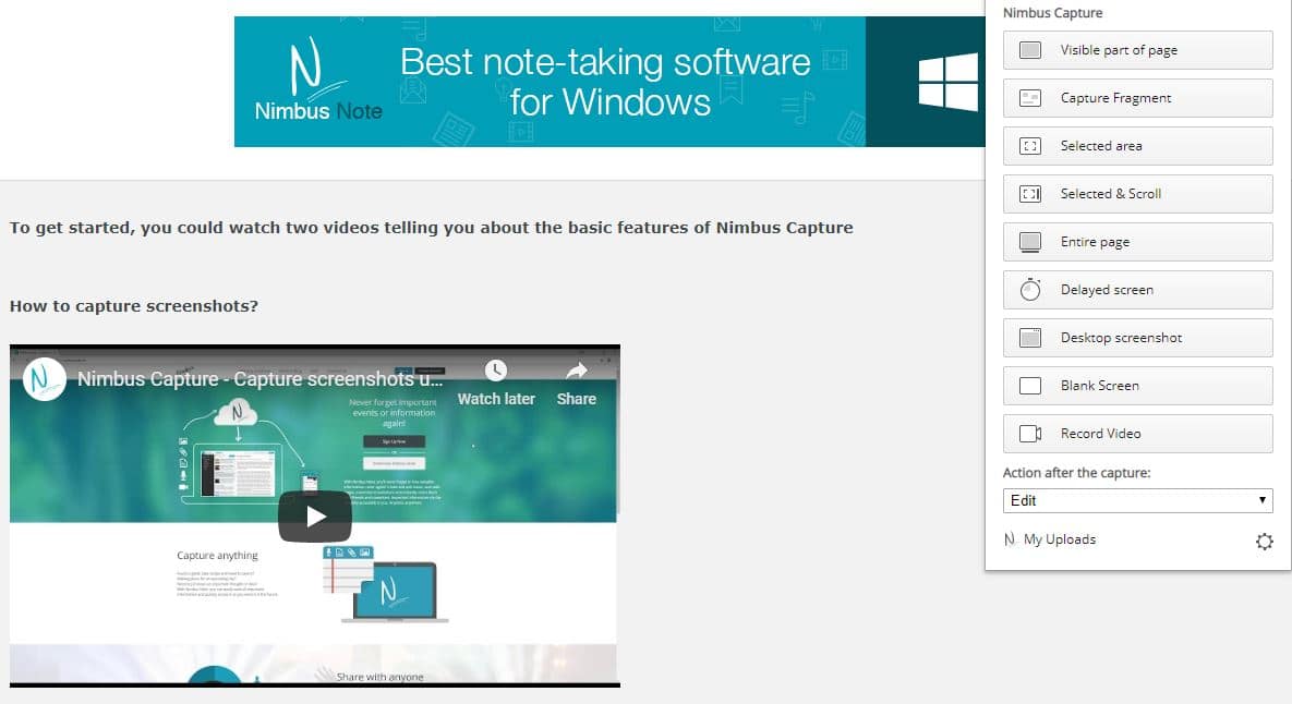 Screen capture full web page or any part. Edit screenshots. Record screencasts.