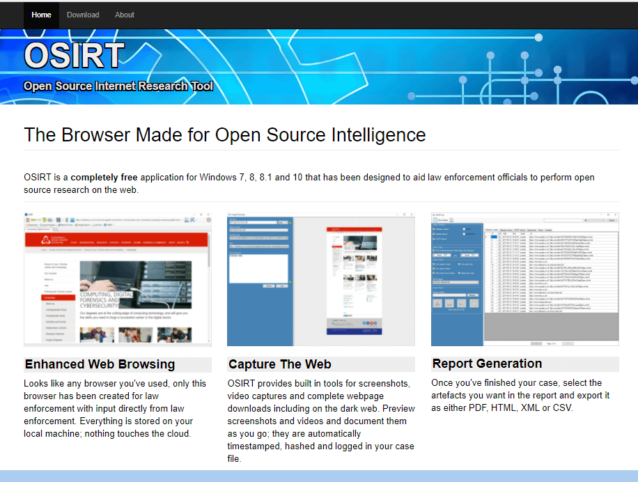 Free application for Windows 7, 8, 8.1, 10 designed to aid law enforcement officials to perform open source research on the web. Developed and maintained by Joseph Williams, a Lecturer at the University of Hertfordshire (UK).