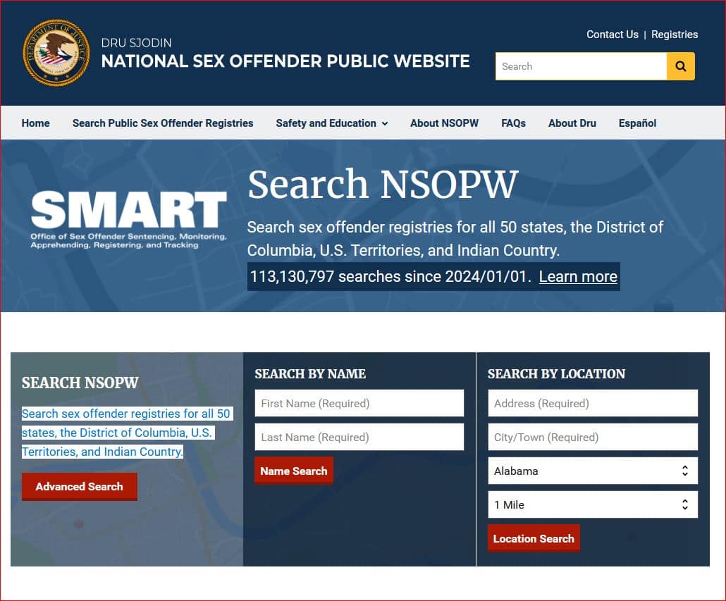 The Dru Sjodin National Sex Offender Public Website – USA