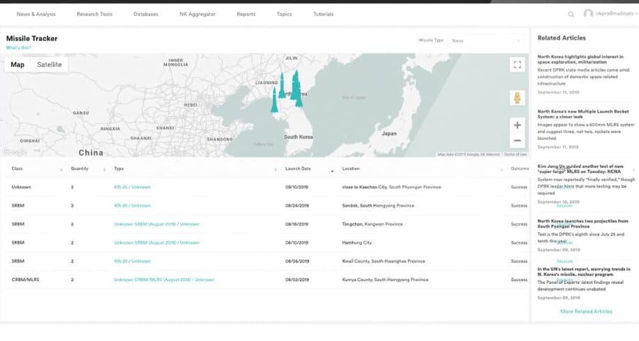 The NK PRO Missile Tracker provides a comprehensive database of all DPRK launch events, missile inventory details, and more.