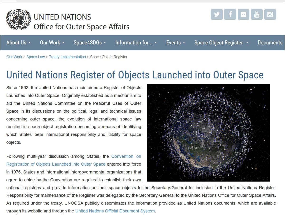 UN Register of Objects Launched into Outer Space