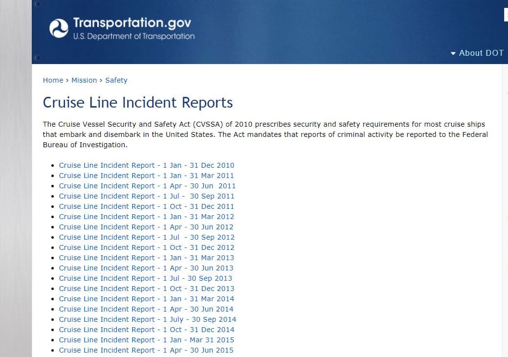 Cruise Line Incidents Report (U.S. Dept of Transportation)