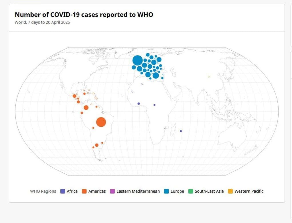 The WHO’s dashboard provided a global overview of COVID-19 cases, deaths, and vaccinations, succeeding some national dashboards. Active as of Apr 2025.